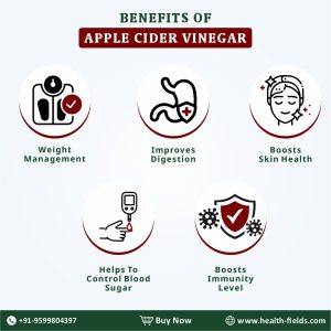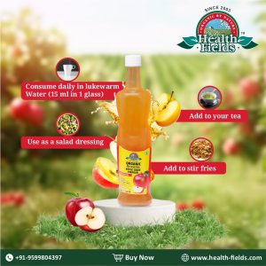 Organic apple cider vinegar (ACV) with the “Mother” is a type of vinegar made from fermented apple juice that contains beneficial bacteria for health. Health Fields organic ACV is processed by crushing apples to extract their juice, which is then exposed to yeast and bacteria.