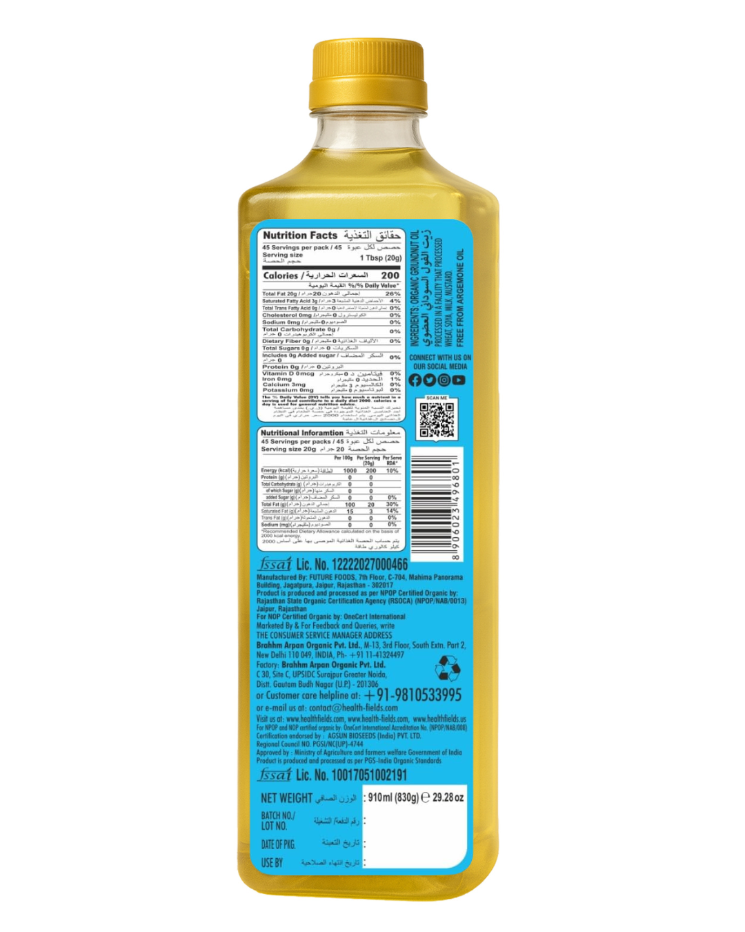 Health Fields Organic Rozana Groundnut Oil – Cold Pressed