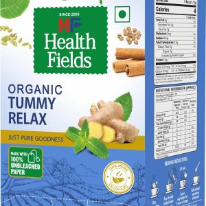 organic peppermint (20%), organic ginger (18%), organic cumin (16%), organic fennel (13%), organic cinnamon (10%), organic carom seeds (8%), organic black pepper, organic turmeric