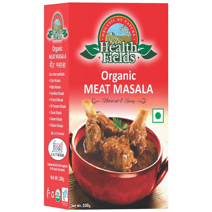 Health Fields Organic Meat Masala is a pepper, coriander, and chili-based mixture that gives non-vegetarian foods, particularly meat, a dark tan, and a fiery flavor. Due to the fact that Indians enjoy their meat to be extremely spicy, this mix contains a good number of flavoring spices.