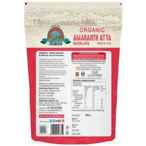 Health Fields Organic Amaranth Atta, also known as Rajgira Atta, is a powerhouse of nutrition made from organically grown amaranth seeds. This naturally gluten-free flour is packed with high-quality protein, calcium, and iron, making it an excellent choice for a wholesome diet.